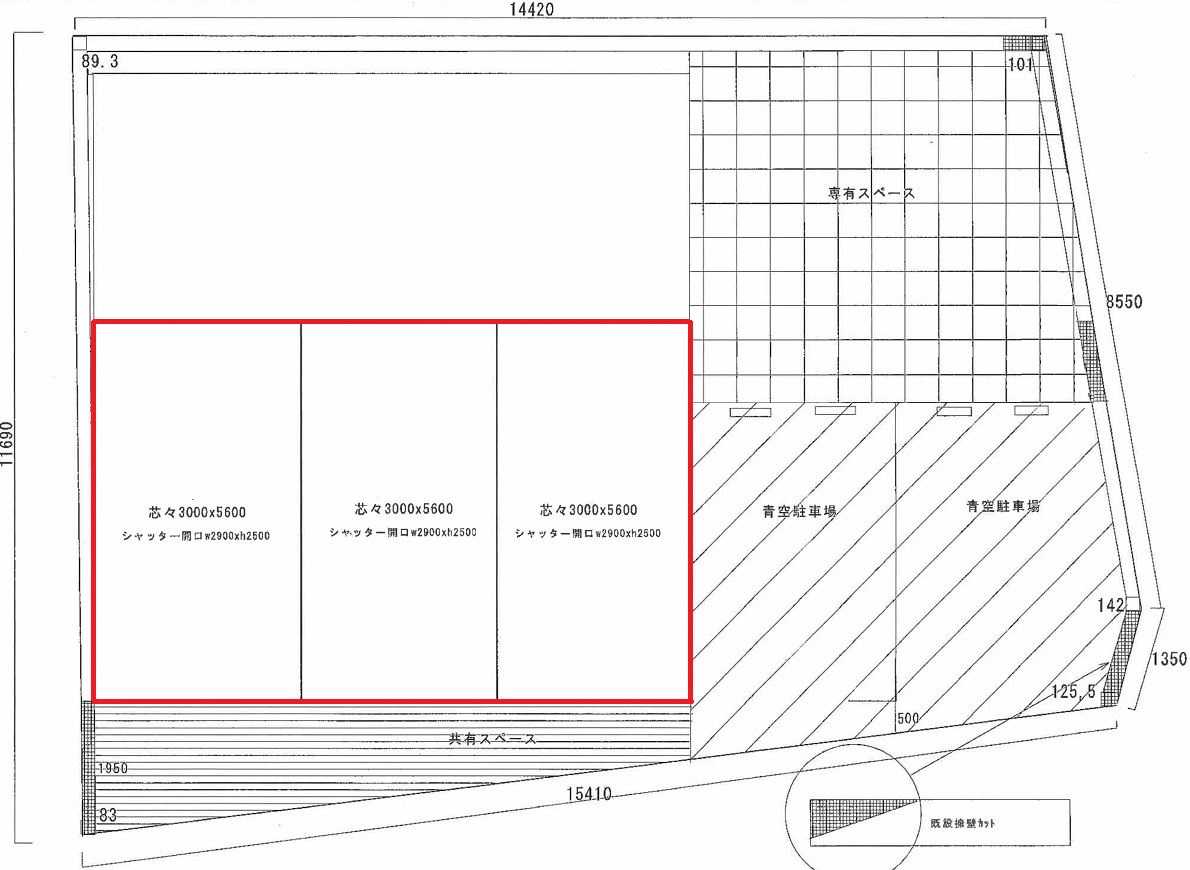3区画セット価格(分割貸もご相談可能ですが、1年未満の解約時敷金返還無)